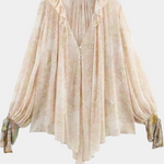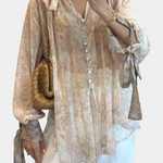 Lucía – Blusa Estampado Pastel Con Mangas Lazo Que Estiliza