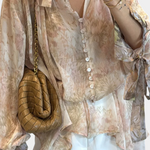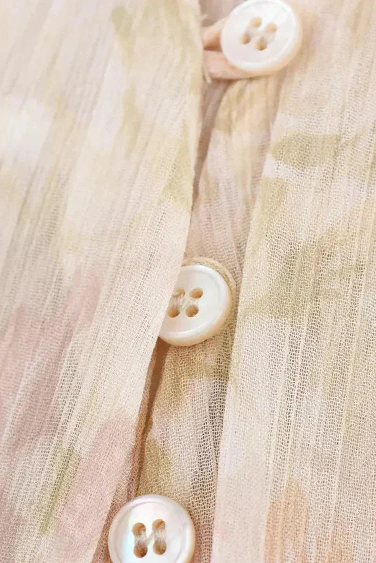 Beneficios y características clave: El estampado pastel aporta versatilidad cromática, combinando con tonos neutros y vivos para crear looks frescos y sofisticados. El tejido ligero permite libertad de movimiento y confort prolongado, y el corte está diseñado para estilizar distintas siluetas sin renunciar a la elegancia. Los detalles, como las mangas con lazo y los botones de nácar, elevan la prenda con un aire artesanal y premium.