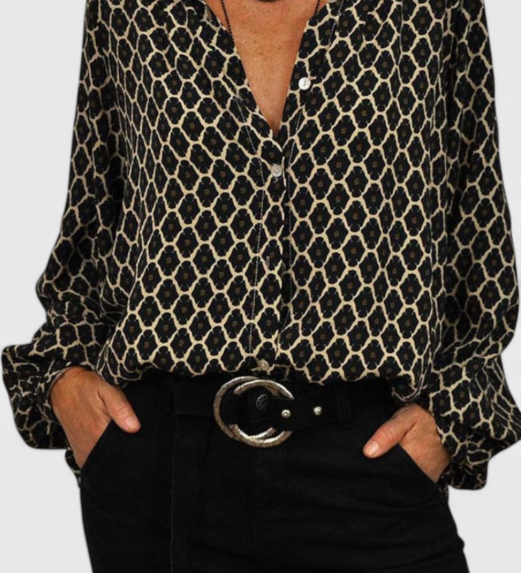 Lucía – Blusa Estampado Geométrico Sutil Con Escote En V