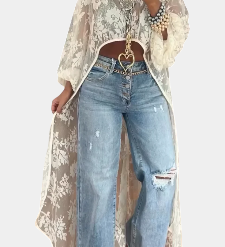 Lucía – Top Maxi de Encaje Largo Que Estiliza Y Mueve