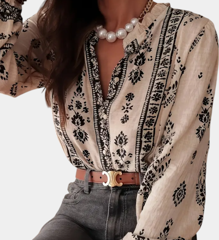 Lucía – Camisa Floral Beige Que Aporta Caída Fluida