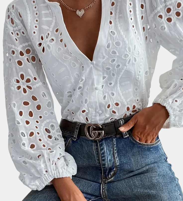 Lucía – Blusa De Encaje Con Bordado Floral Elegante