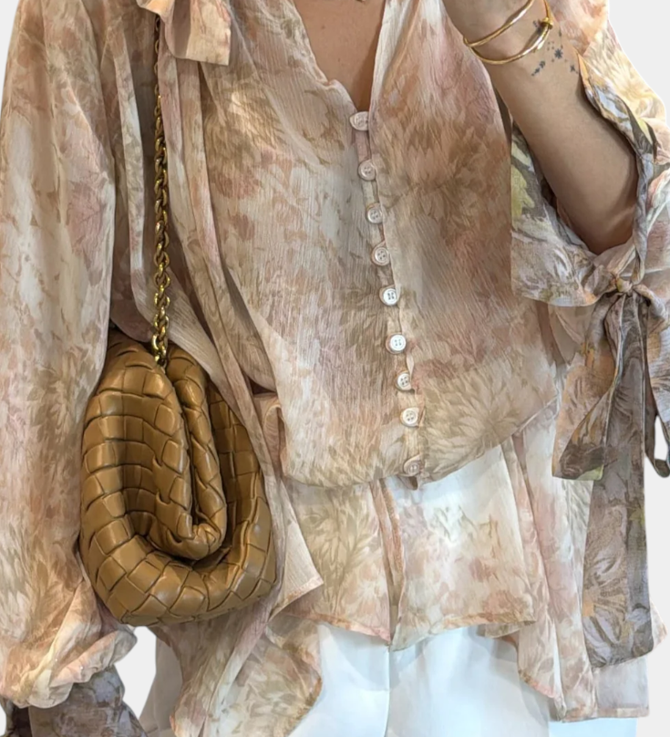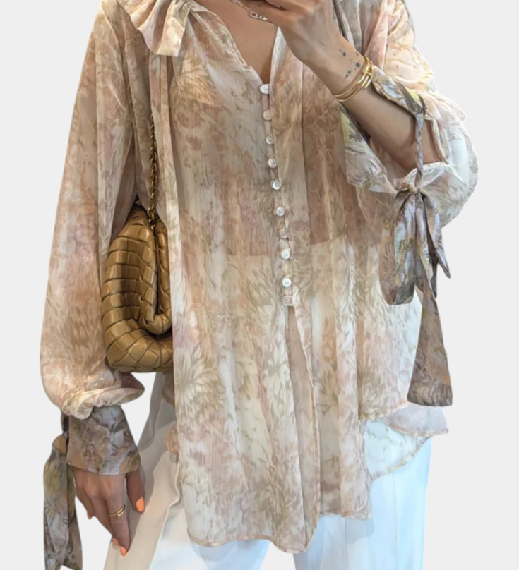 Lucía – Blusa Estampado Pastel Con Mangas Lazo Que Estiliza