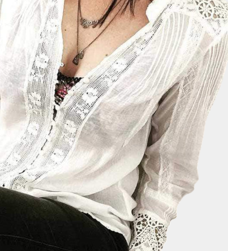 Lucía – Blusa De Encaje En Algodón Transpirable Con Escote V