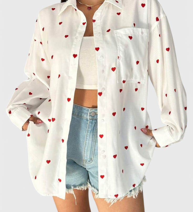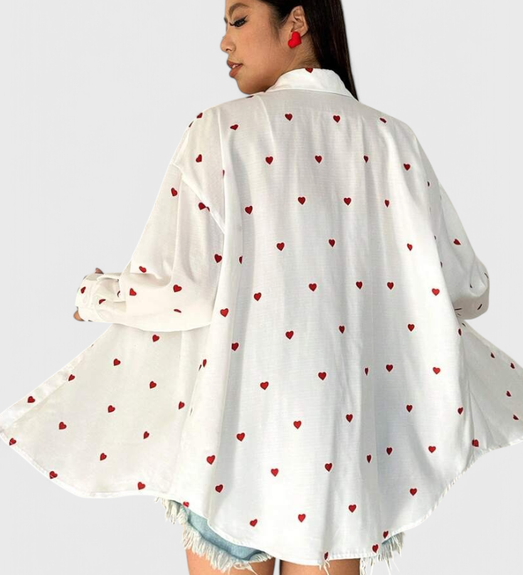 Lucía – Blusa de Algodón Bordada Con Corazones Ligera