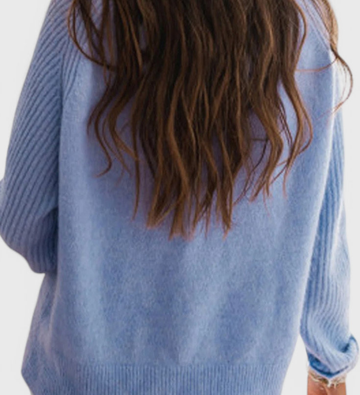 Elena – Suéter Cremallera Parcial y Cuello en V Elegante
