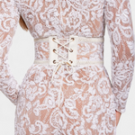 Beneficios y características clave: El diseño entallado y el cinturón ancho tipo corsé definen la cintura y estilizan la figura, mientras que el encaje bordado aporta un acabado artesanal y femenino. Las lentejuelas están integradas sobre la base de forma equilibrada para capturar la luz sin sobrecargar el look, proporcionando un brillo sutil y elegante. Su confección cuidadosa garantiza un ajuste favorecedor y una apariencia sofisticada para ceremonias, fiestas o sesiones fotográficas.