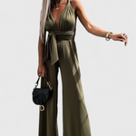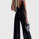 Beneficios y características clave: El corte de pierna ancha aporta comodidad sin renunciar al estilo, mientras que el cinturón incluido permite definir la cintura para un ajuste personalizado y un acabado pulido. El escote profundo favorece el cuello y la línea del pecho, y los tirantes cruzados en la espalda suman un detalle moderno y femenino. Es una pieza versátil que funciona igual de bien en una cena elegante que en un plan urbano chic.