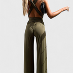 Minimalista y sensual, el mono "Lucía" de pierna ancha y espalda cruzada es la elección perfecta para una velada especial o para una jornada en la ciudad con un toque sofisticado. Su escote profundo y la espalda descubierta con tirantes entrecruzados crean una silueta elegante que alarga la figura y realza el porte femenino.