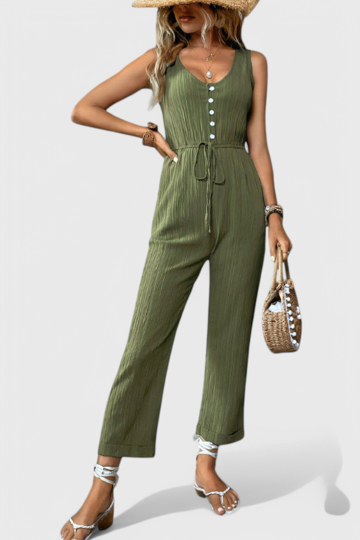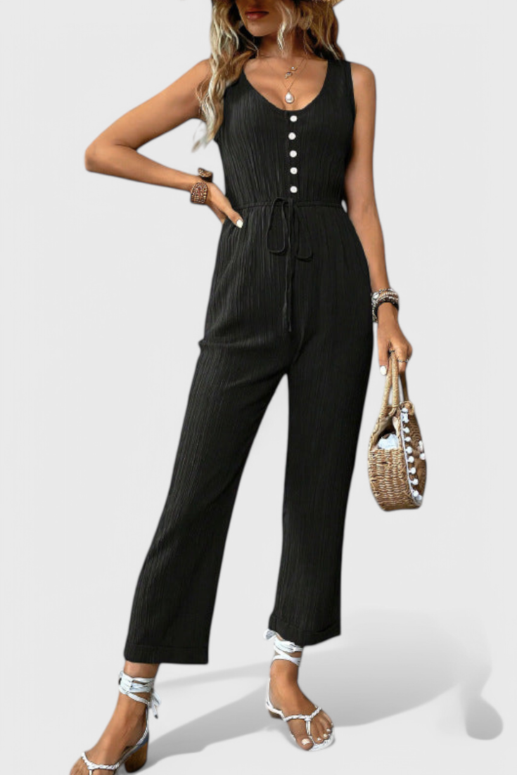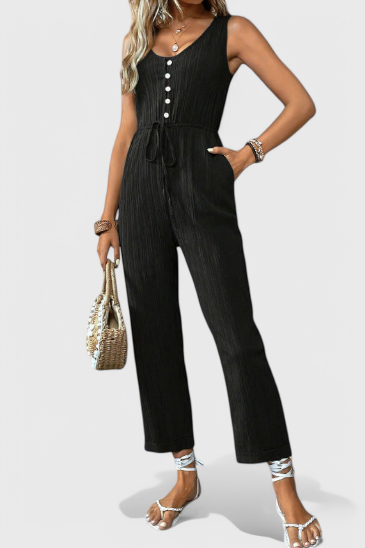 María – Mono Texturizado Con Cinturón Que Estiliza Figura