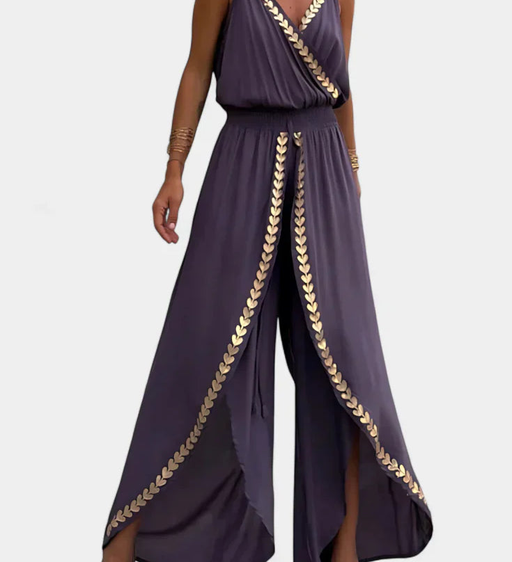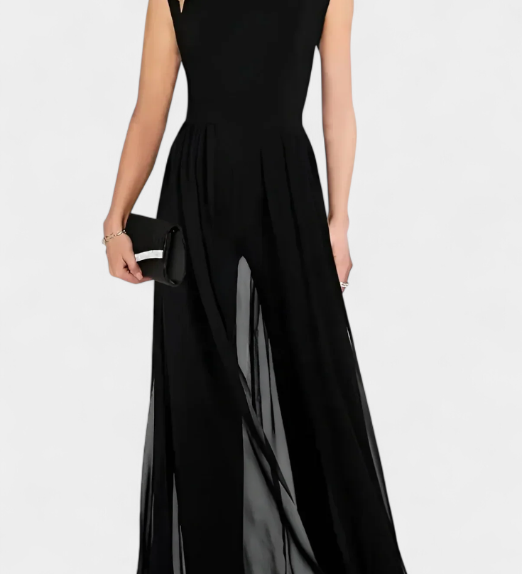 Natalia – Mono Elegante Sin Mangas Con Chiffon Translúcido
