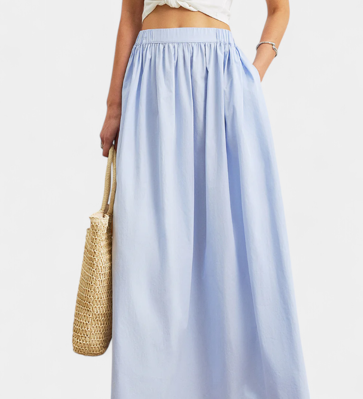 Lucía – Falda A Line De Algodón Cintura Elástica y Bolsillos