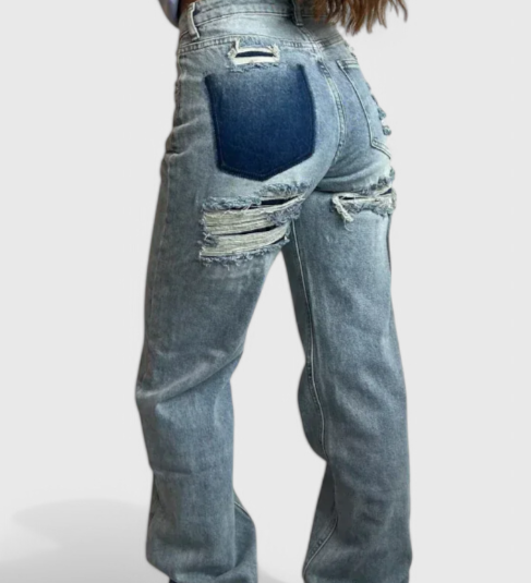 Lucía – Jeans Tiro Alto Patchwork Que Estilizan La Silueta