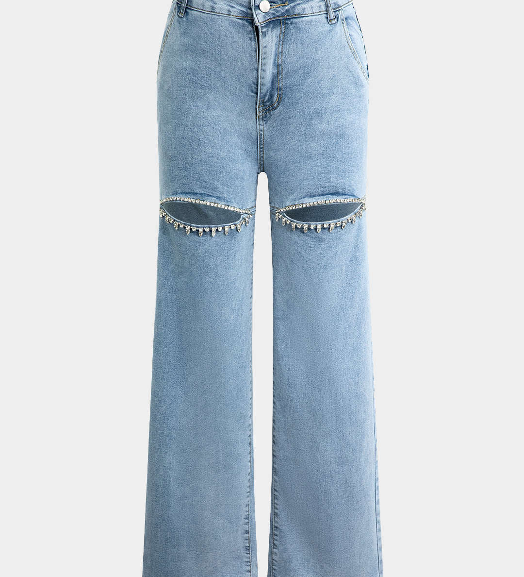 Lucía – Jeans Rasgados Rectos Con Rhinestones Brillantes