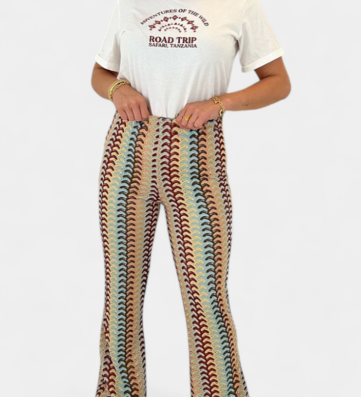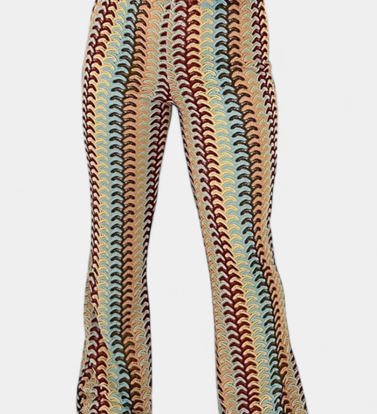 Lucía – Pantalón Acampanado Estampado Retro Que Moldea