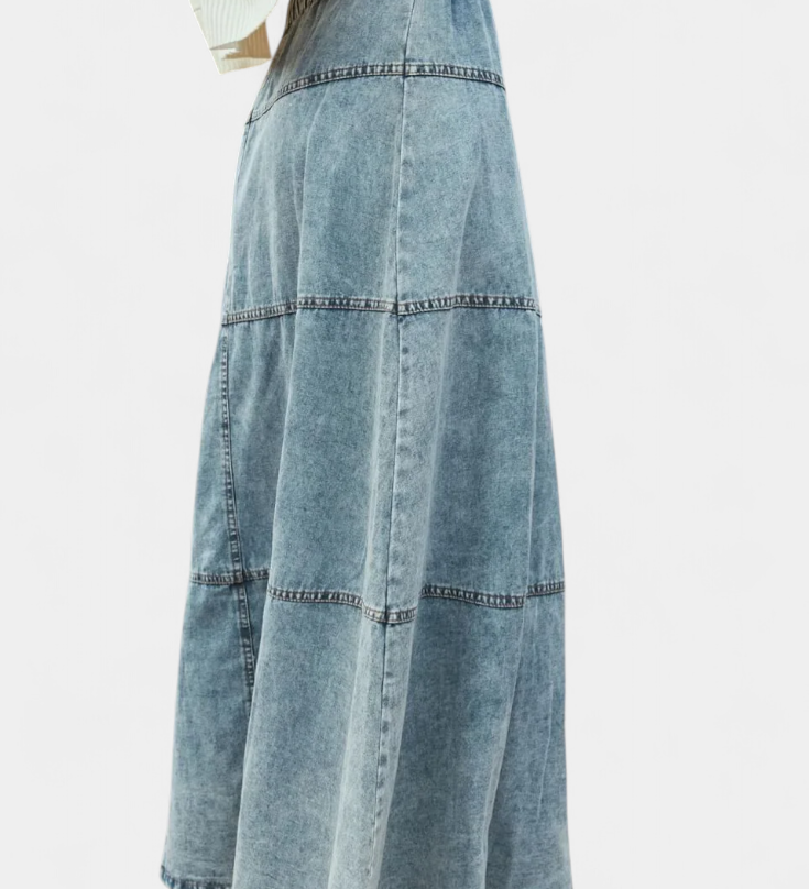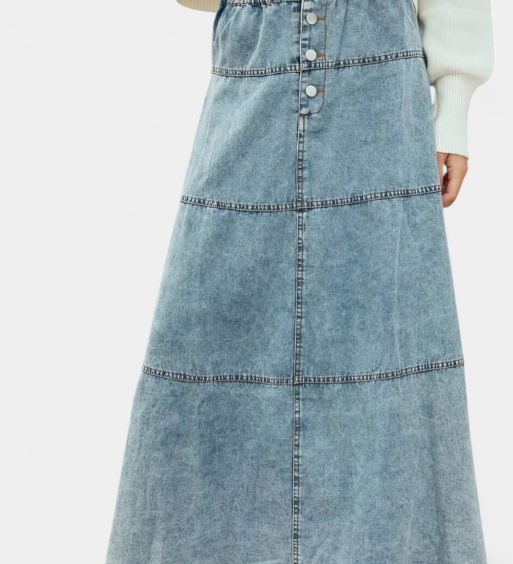 Lucía – Falda Maxi Vaquera Con Detalle De Pluma Chic