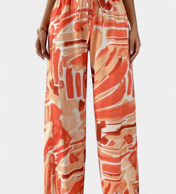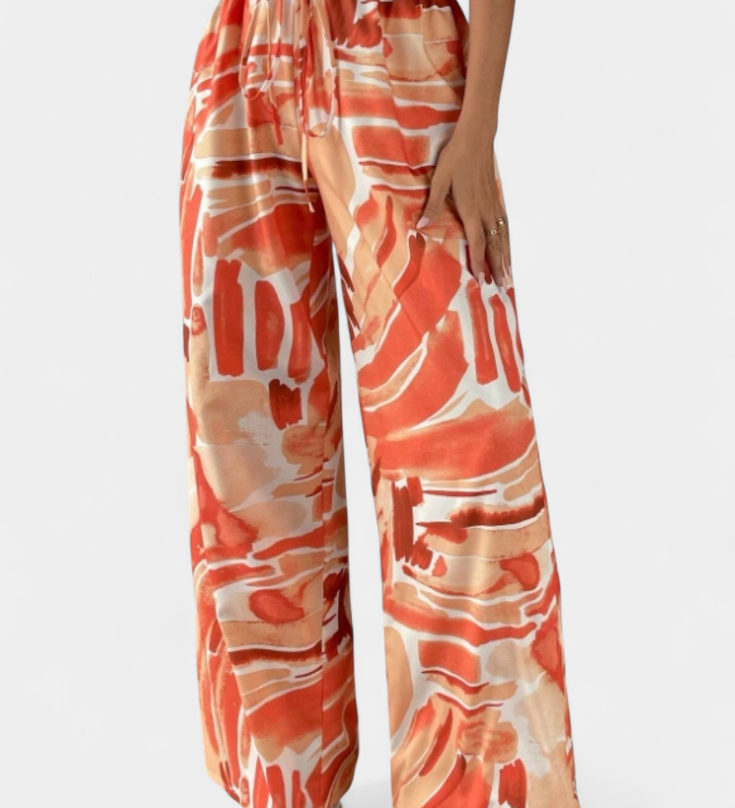 Lucía – Pantalón De Pierna Ancha Con Estampado Artístico