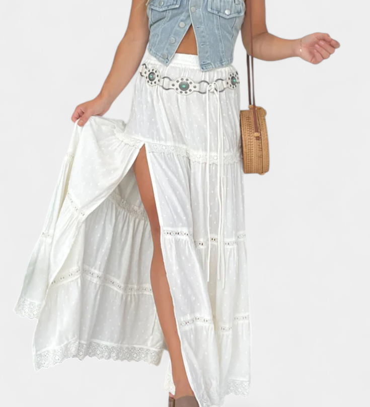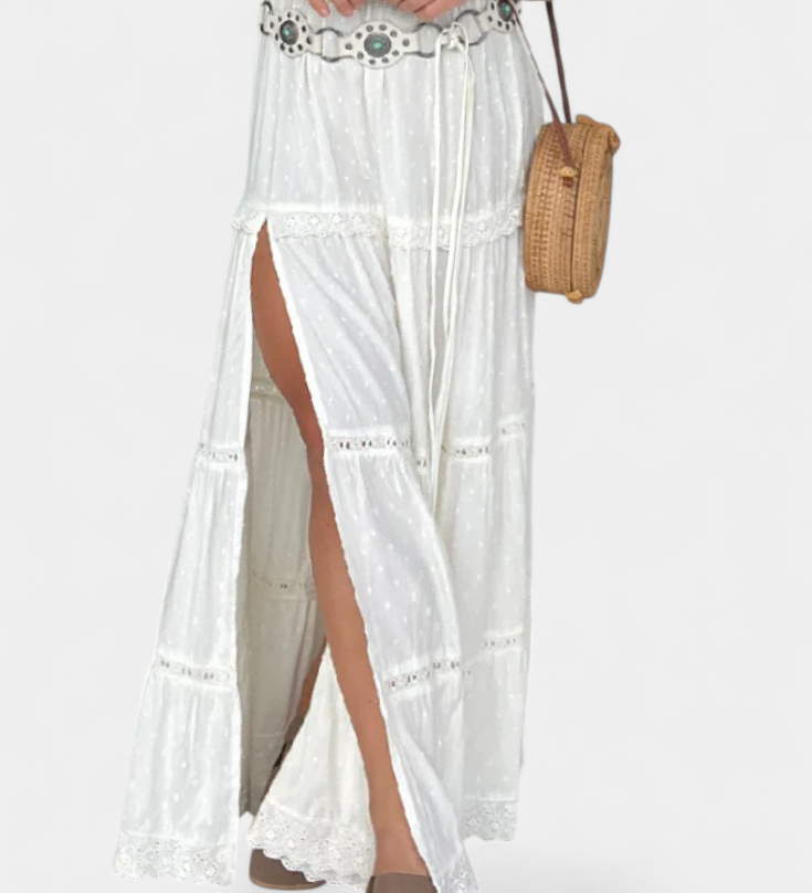Lucía – Falda Maxi Boho Con Encaje Y Abertura Frontal