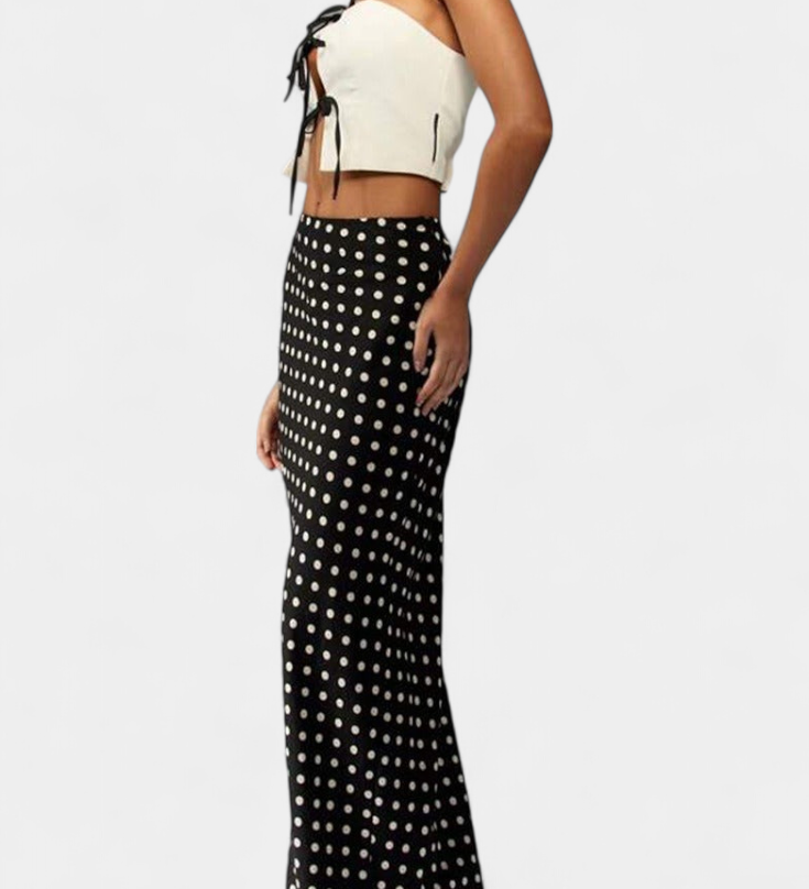 Lucía – Falda Entallada De Viscosa Lunares Que Estiliza