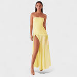 Descubre Alicia – Vestido Palabra De Honor Que Estiliza La Figura, una pieza de elegancia sin esfuerzo diseñada para quienes buscan un look femenino y sofisticado. Su escote palabra de honor y la falda larga con abertura lateral crean una silueta armoniosa y versátil, perfecta para una velada especial, una boda de día o una cena elegante.