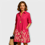 Elena es un vestido tipo camisa que combina elegancia y comodidad diaria con un aire atemporal. Diseñado para acompañarte desde la oficina hasta una cena especial, su silueta estilosa y acabado refinado aportan un toque sofisticado y femenino en cada ocasión.