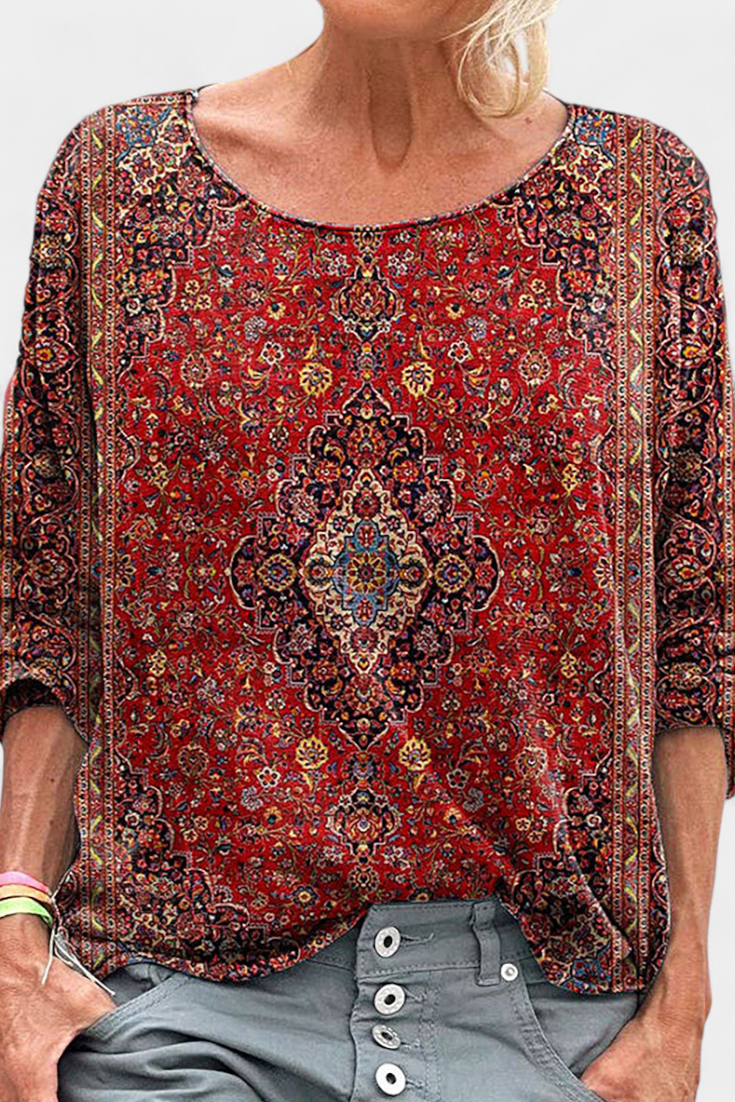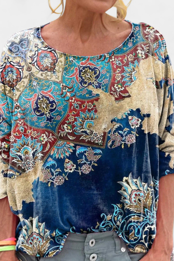 Lucía – Blusa Holgada Estampado Bohemio Que Inspira