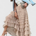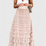 Beneficios y características clave: La falda realza la figura con discreción gracias a su corte que estiliza la cintura y al volumen controlado del tul. Es una prenda versátil que combina con tops elegantes, jerséis finos o blusas románticas, permitiendo transiciones fluidas entre ocasiones formales y looks cotidianos con un toque sofisticado. Además, su ligereza facilita la comodidad durante todo el día sin renunciar a un acabado femenino y elegante.