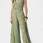 El mono Lucía es una pieza femenina y versátil que combina elegancia y espíritu bohemio. Ideal para días cálidos y para eventos informales, su diseño fluido y el escote cruzado realzan la silueta con naturalidad, mientras la espalda descubierta añade un aire sofisticado y moderno. El delicado estampado floral verde aporta frescura y un toque de color que ilumina cualquier look.