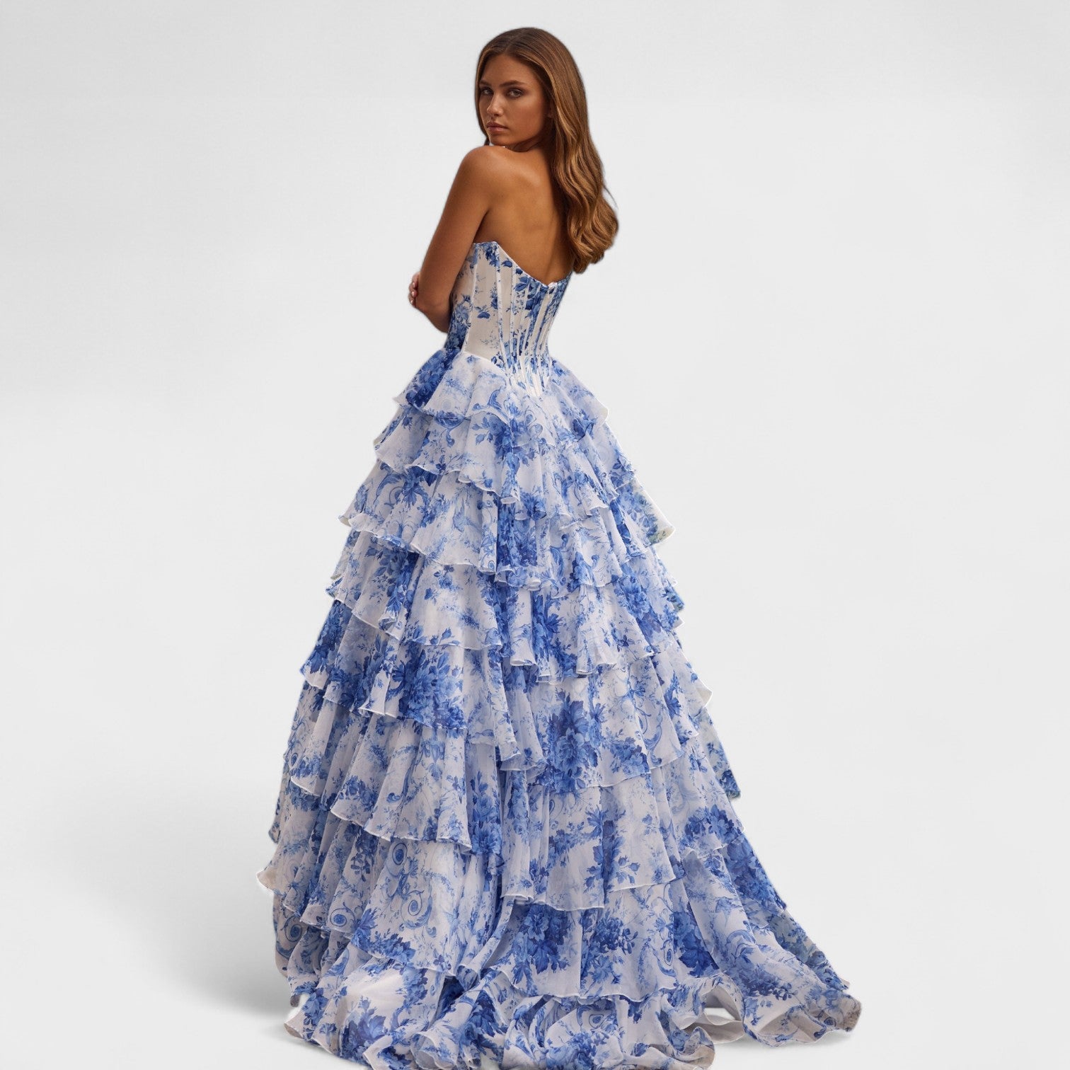 Lucía – Vestido Floral Con Corsé Que Realza La Silueta es una pieza de elegancia atemporal pensada para ocasiones especiales. Su diseño combina un estampado floral refinado con la estructura marcada del corsé y una falda de volantes vaporosos, creando un equilibrio perfecto entre presencia y delicadeza. Ideal para bodas, cenas elegantes o eventos donde quieras ser el centro de todas las miradas.