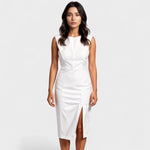 Lucía – Vestido veraniego ligero que estiliza la silueta es la pieza perfecta para tus días soleados: un vestido elegante y fresco, pensado para realzar tu figura con sutileza y ofrecer comodidad durante todo el día. Su diseño sin mangas y escote redondo lo convierte en una opción versátil, ideal tanto para la oficina en días cálidos como para una cena informal.