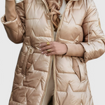 Beneficios y características clave: Marina está diseñada para mantener la calidez sin añadir volumen innecesario, realzando la silueta con una caída elegante. El acolchado suave distribuye el calor de forma uniforme y el aislante ligero asegura confort durante todo el día. Su corte de superposición facilita combinarlo con otras prendas del armario, mientras que la confección cuidada y los acabados limpios ofrecen una apariencia pulida y duradera.