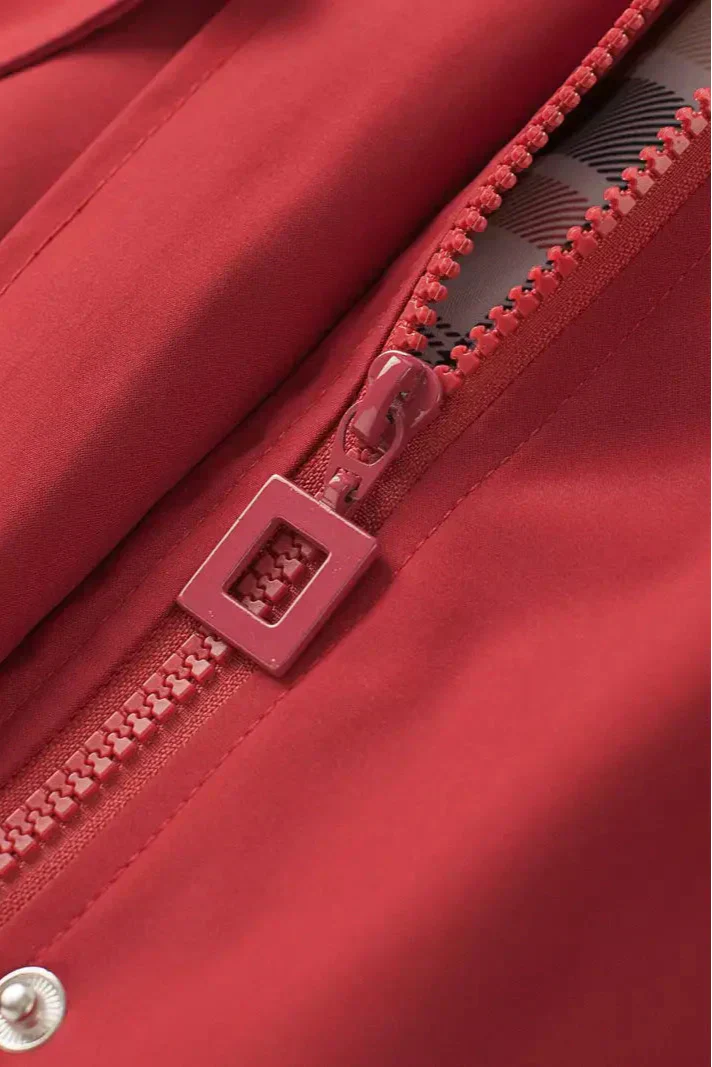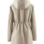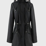Material y confección: Confeccionado en tejido de poliéster con tratamiento impermeable y forro interior suave, este abrigo es ligero pero resistente. El acabado repelente al agua mantiene la prenda seca en lluvias ligeras o moderadas, mientras que la confección cuidada garantiza un tacto cómodo y un aspecto refinado.