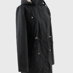 Beneficios y características clave: La silueta ajustada realza la figura sin añadir volumen, proporcionando un perfil elegante y definido. Las mangas largas ofrecen mayor cobertura y calidez, y el tejido impermeable asegura confort durante desplazamientos bajo la lluvia. Su diseño versátil se integra fácilmente con diferentes outfits, aportando funcionalidad y sofisticación en climas cambiantes.