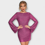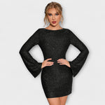 Material y confección: Confeccionado en tejido principal de poliéster con aplicaciones de lentejuelas que capturan la luz en cada movimiento y forro interior de satén suave. El acabado ofrece una caída elegante y un tacto confortable; las mangas largas y la espalda descubierta muestran una mezcla de sofisticación y feminidad cuidadosa en los detalles.