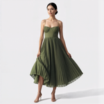 Verónica – Vestido Verde Mediterráneo que realza la silueta con un estilo elegante y femenino. Diseñado para quienes buscan una pieza versátil, este vestido destaca por su tono verde vibrante y su corte fluido, perfecto tanto para una tarde de verano como para una cena especial. Su escote envolvente y caída natural crean una presencia refinada y contemporánea, ideal para ocasiones informales y eventos elegantes.